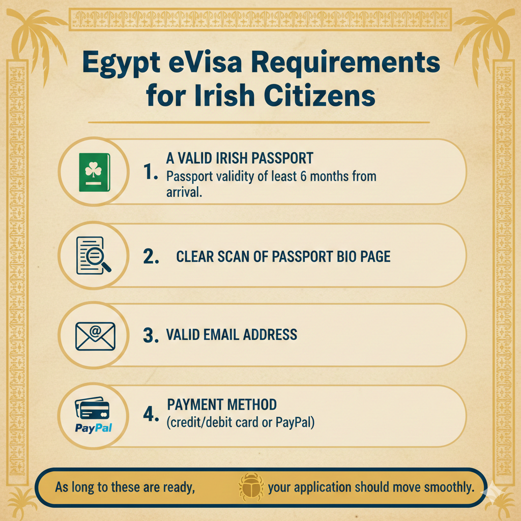 What are the Egypt eVisa requirements for Irishcitizens?